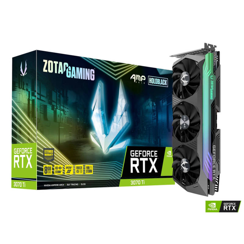 "ZOTAC hat mit der AMP Holo eine fantastisch aussehende GeForce RTX 3070 Ti Grafikkarte entwickelt, die alles bietet, was NVIDIA unter der Ampere GPU-Architektur und 8 GB GDDR6X Speicher zu bieten hat. ..." - übersetzt durch die Testsieger.de-Redaktion