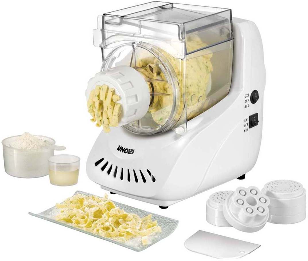 Der Unold Nudelmeister bietet die Möglichkeit, ganz einfach Nudelteig zu kneten und verschiedene Arten von Nudeln schnell herzustellen. Mit seiner robusten Bauweise aus Kunststoff ermöglicht er eine einfache Bedienung für das Kneten des Teigs und sorgt somit für eine unkomplizierte Zubereitung von frischer Pasta.