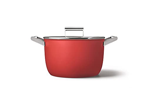Die Smeg CKFC2611RDM Kasserolle mit Deckel wird für ihre hervorragende Antihaftbeschichtung, das elegante Design und die gleichmäßige Wärmeverteilung gelobt. Sie eignet sich gut für Induktionsherde und ist groß genug für Familiengerichte. Ein Nachteil ist, dass sie nach einigen Monaten Gebrauch beschädigt werden kann.