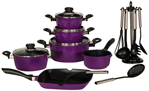 Das Karl Krüger 17/L Kochtopfset aus Aluguss bietet eine robuste Bauweise und ermöglicht eine schnelle Zubereitung von Speisen. Die Töpfe wirken hochwertig und sind pflegeleicht. Allerdings gibt es Berichte über Farbveränderungen und Abfärbung, insbesondere bei der Nutzung in der Spülmaschine. Zudem sind die mitgelieferten Küchenhelfer nicht von hoher Qualität.