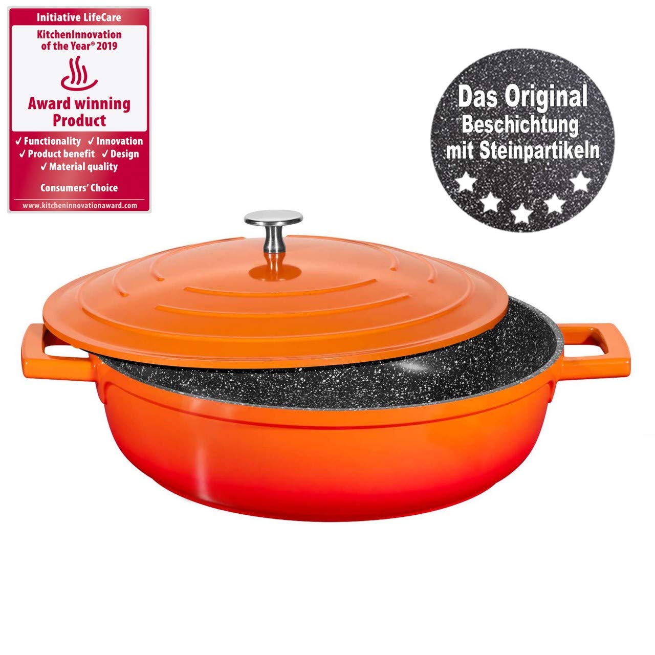 Der STONELINE Bräter bietet eine hervorragende Qualität und ist vielseitig einsetzbar. Er eignet sich besonders gut für Schmorgerichte und lange Kochzeiten, wobei die Wärme gleichmäßig verteilt wird. Der dichte Deckel sorgt dafür, dass die Aromen erhalten bleiben. Die Reinigung ist einfach und das Design ist ansprechend. Einige Nutzer bemerken jedoch, dass Wasser beim Öffnen des Deckels austreten kann und dass der Bräter nicht für schnelle Gerichte geeignet ist.