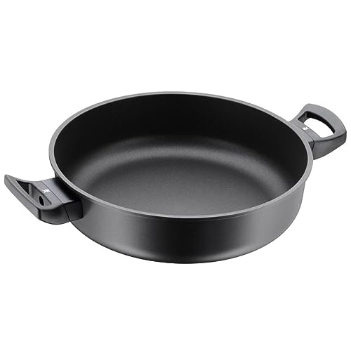 Die WMF PermaDur Excellent Schmorpfanne hat einen hochwertigen Eindruck und bietet eine gleichmäßige Wärmeverteilung, was sie ideal für Schmorgerichte macht. Sie verfügt über zwei praktische Griffe und eine gute Anti-Haft-Beschichtung, die die Reinigung erleichtert. Allerdings berichten einige Nutzer von Abplatzungen der Beschichtung und Verformungen nach kurzer Nutzungsdauer. Zudem wird der hohe Preis und das Fehlen eines Deckels kritisiert.