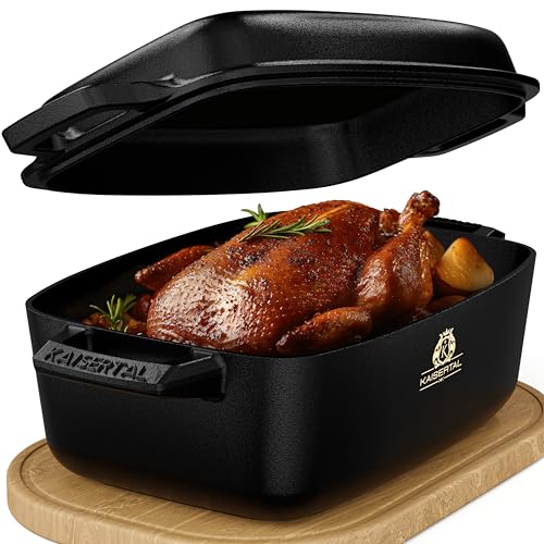 Der K KAISERTAL Gusseisen Bräter überzeugt durch seine hochwertige Verarbeitung und gleichmäßige Wärmeverteilung, die für schmackhafte Ergebnisse beim Kochen sorgt. Er ist vielseitig einsetzbar und ermöglicht das Anbraten von Zutaten direkt im Bräter. Der Deckel trägt zur Saftigkeit der Speisen bei. Dennoch sollte auf die Pflege geachtet werden, um Rostbildung zu vermeiden.