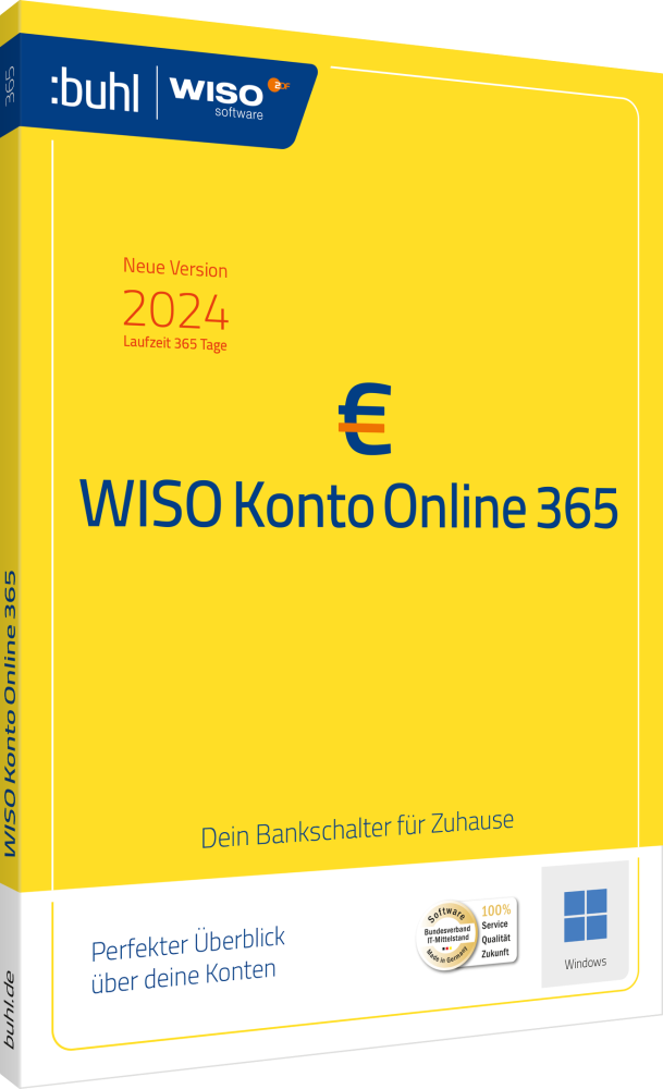 • WISO Konto Online 365 ist eine Online-Banking-Software speziell für Windows, die eine übersichtliche Finanzverwaltung direkt von zu Hause aus ermöglicht.