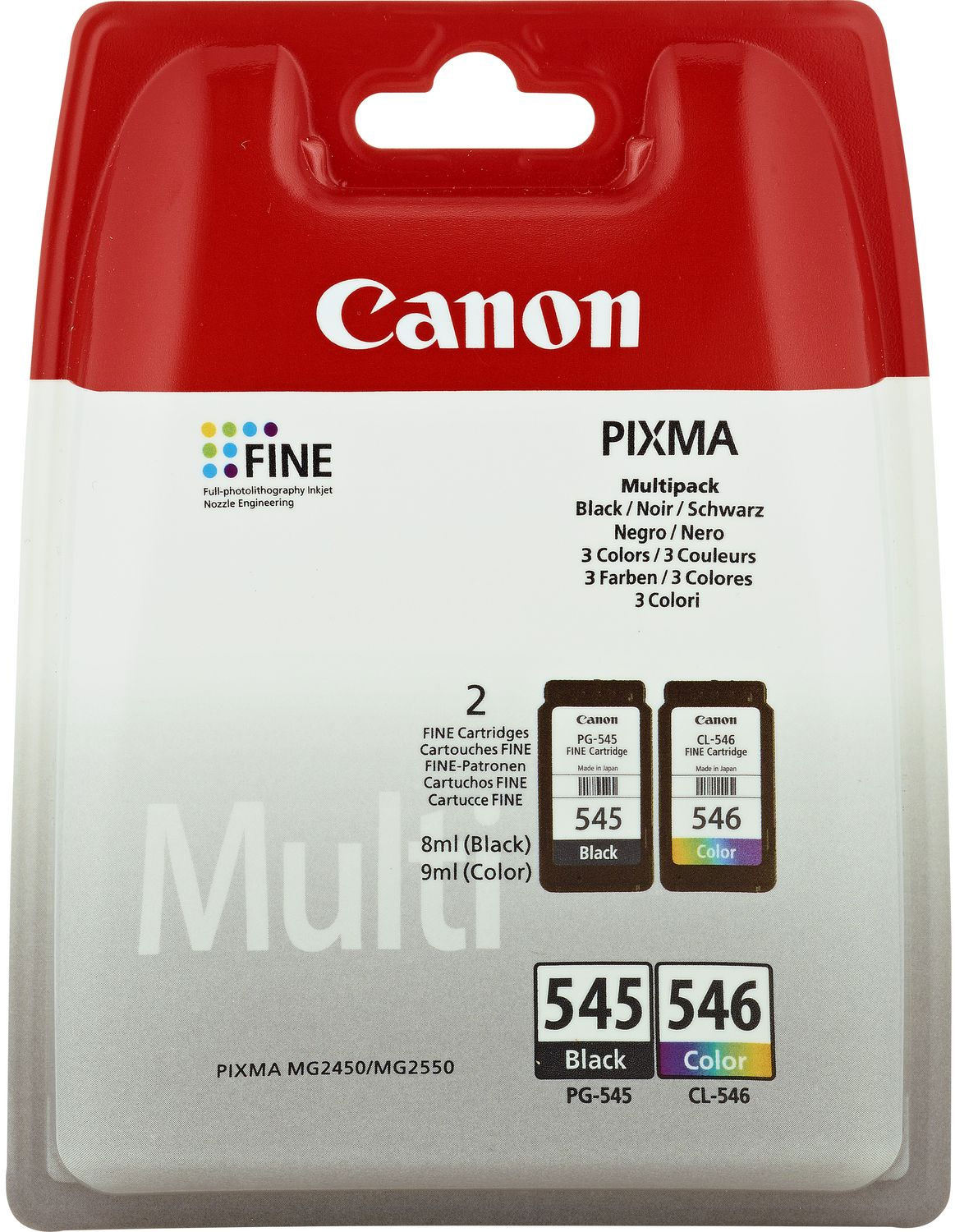 Die Canon PG-545+CL-546 original Tintenpatrone Schwarz und Mehrfarbig bietet eine ausgezeichnete Druckqualität für den Pixma Inkjet Drucker. Die einfache Montage ermöglicht ein schnelles Austauschen der Patrone, um einen reibungslosen Betrieb des Druckers zu gewährleisten. Mit dieser original Tintenpatrone erhalten Sie gestochen scharfe Textdokumente sowie lebendige Farbfotos.