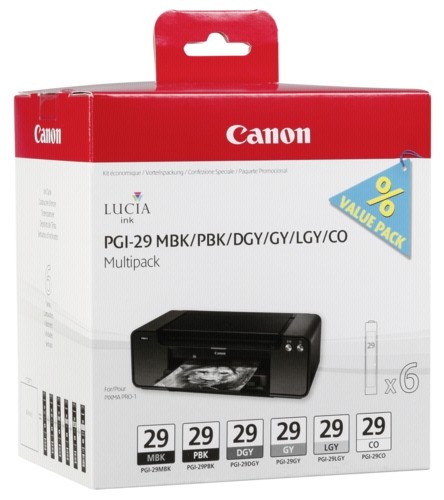 Das Canon PGI-29 6 original Tintenpatrone Multipack MBK-PBK-DGY-GY-LGY-CO für Pixma Inkjet Drucker PRO1 bietet eine hohe Qualität und Farbgenauigkeit. Der Kauf dieses Multipacks ist im Vergleich zum Einzelkauf der Patronen günstiger und somit ökonomisch sinnvoll. Zudem wird das Produkt schnell geliefert.
