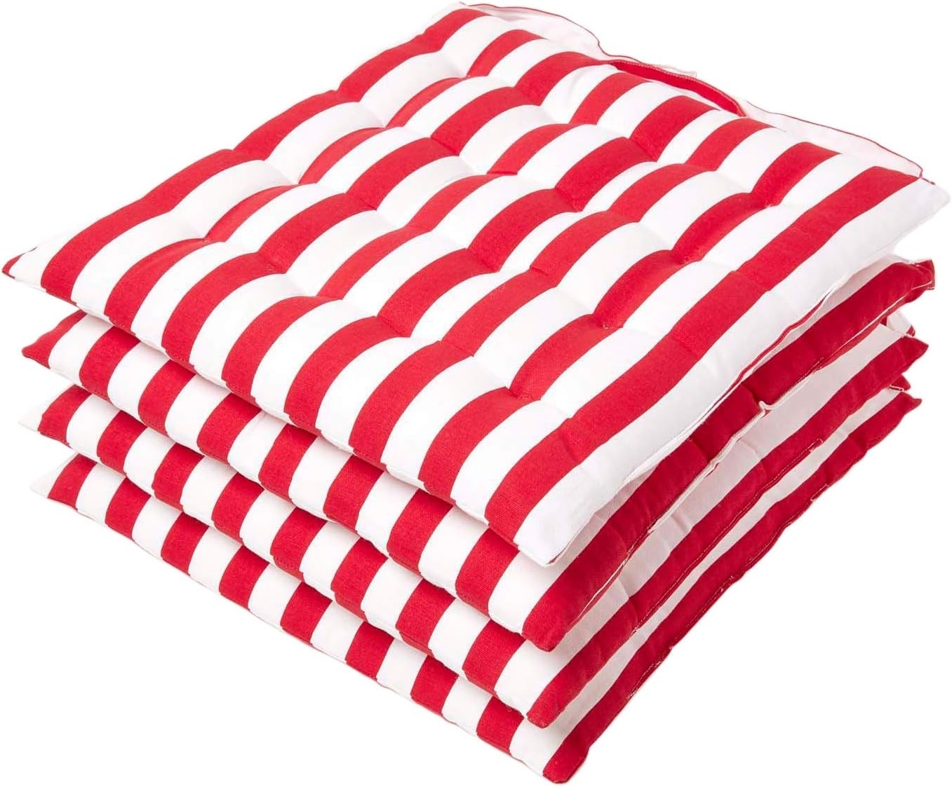 | Name | Homescapes Stuhlkissen Sitzkissen mit breiten Streifen, 100% Baumwolle, rot, 4er-Set |