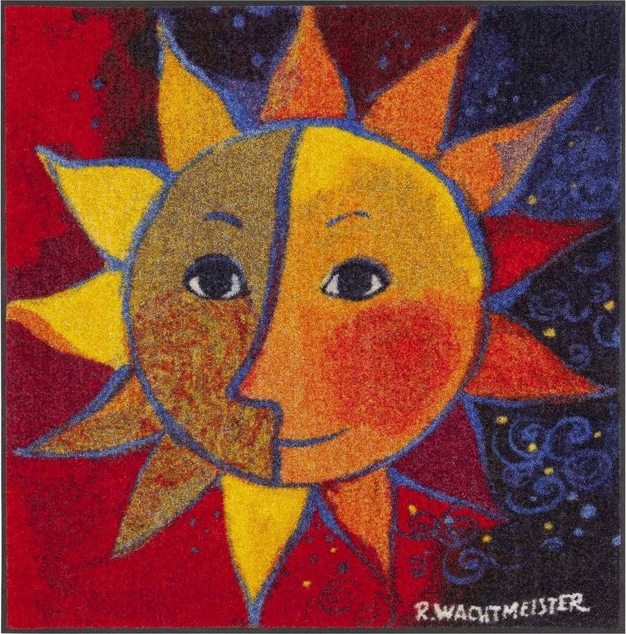 Die Salonloewe Teppich Fußmatte Rosina Wachtmeister Sole in Rot ist eine quadratische Matte mit den Maßen 85x85 cm. Hergestellt aus 100 % Polyamid, bietet sie ein modernes Design und ist pflegeleicht sowie strapazierfähig. Die rutschfeste und trittschalldämmende Matte eignet sich sowohl für Innen- als auch Außenbereiche und ist ideal für Allergiker. **Highlights** - Waschbare Fußmatte bis 60 Grad - Rutschfest und trittschalldämmend - Pflegeleicht und strapazierfähig - Geeignet für Fußbodenheizung - Besonders staub- und schmutzbindend **Produkteigenschaften** - Maße: 85x85 cm - Material: 100 % Polyamid - Gummi: emcoFlex, PVC-frei - Hergestellt in Deutschland von Efia - Für Innen- und Außenbereiche geeignet