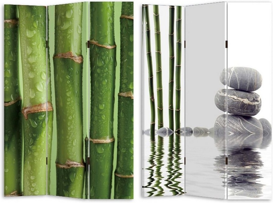 Der HTI-Line Paravent Bambus 2 ist der ideale Raumteiler und Sichtschutz für Ihr Zuhause. Mit seinen beidseitig bedruckten Bambusmotiven bringt er eine asiatische Note in Ihr Wohnambiente und sorgt für eine entspannende Atmosphäre. Die hochwertigen Scharniere gewährleisten eine stabile Verbindung der Paneele, während der Korpus aus Tannenholz und der Bezug aus hochwertigem Leinwandstoff für Langlebigkeit und Stil sorgen. **Highlights** - Beidseitig bedruckt mit ansprechenden Bambusmotiven - Hochwertige Scharniere für stabile Paneelverbindung - Korpus aus Tannenholz für Robustheit - Bezug aus hochwertigem Leinwandstoff - Flexibler Einsatz als Raumteiler oder Sichtschutz **Produkteigenschaften** - Maße: 2x1 St. - Stilvolles Design für ein angenehmes Wohnambiente - Ideal für die Schaffung von Privatsphäre in Wohnräumen