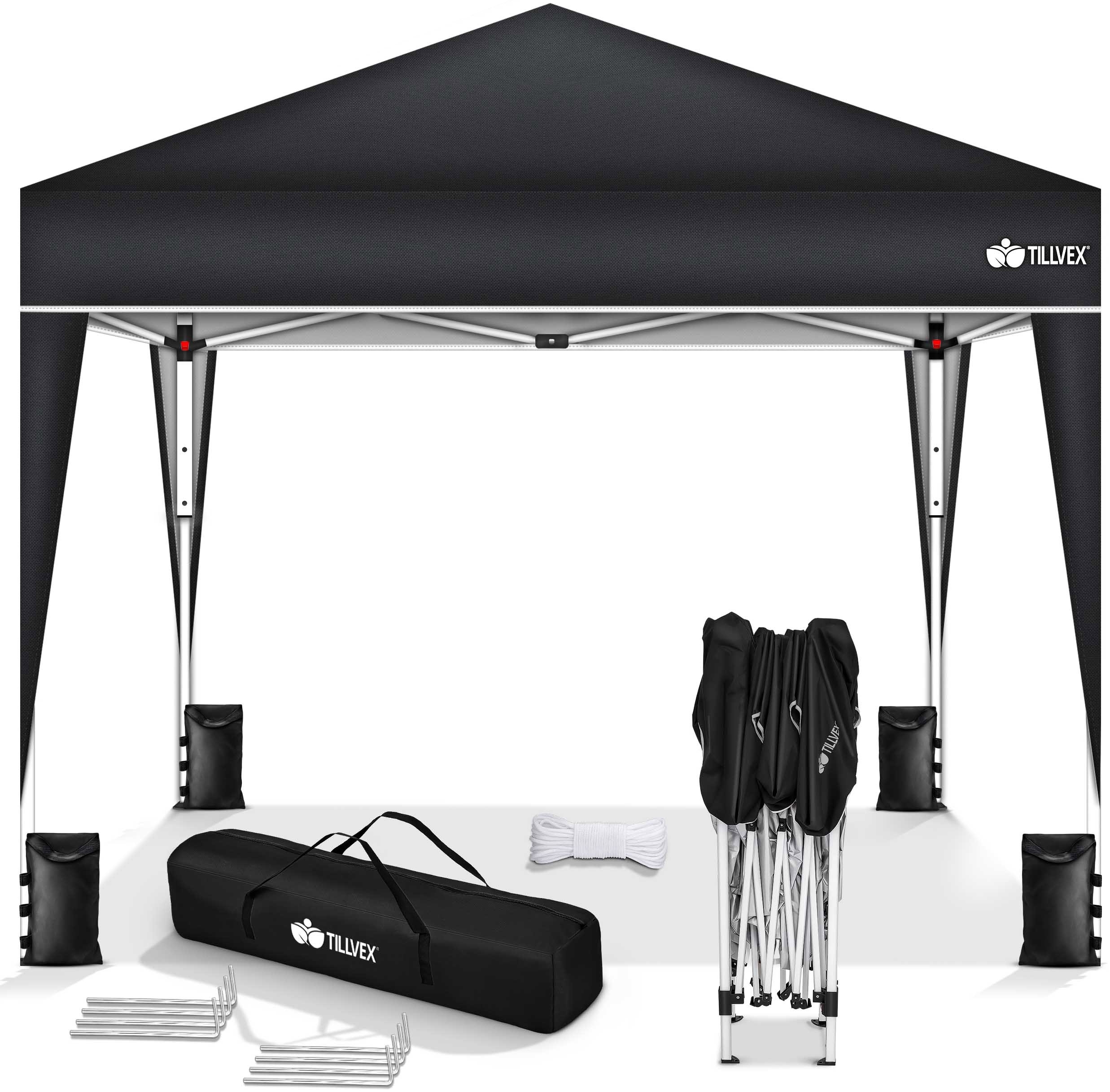 | Name | tillvex Pop-Up Faltpavillon mit Tasche, wasserdicht, höhenverstellbar & UV Schutz 50+, Stahl / Polyester, 3x3 m, Schwarz |