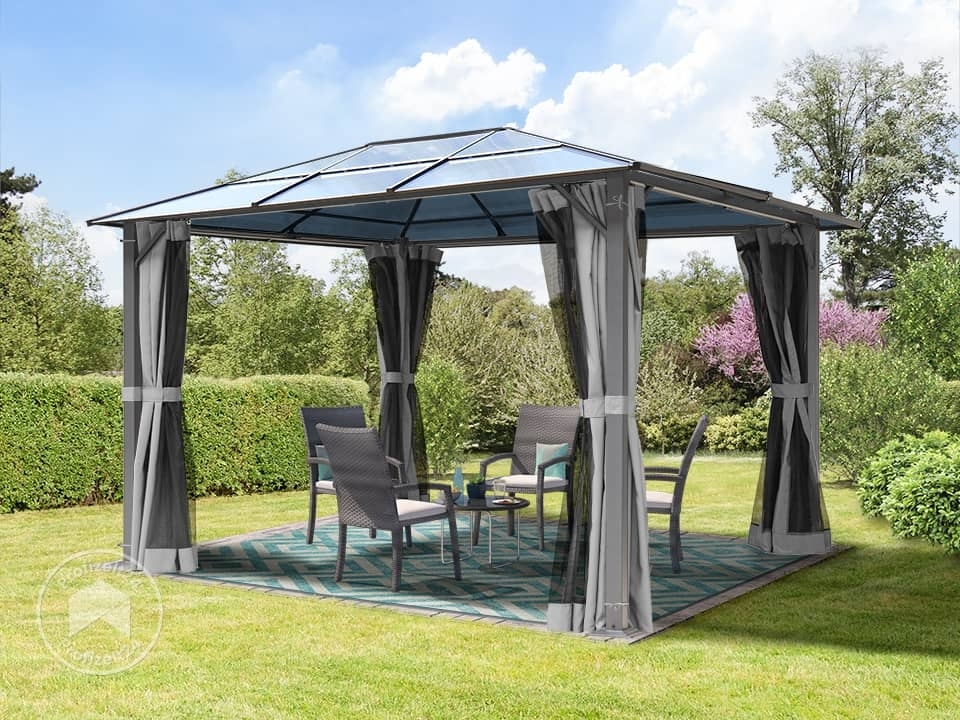| Name | TOOLPORT Gartenpavillon 3x3,65 m Polycarbonat Dach ca. 6 mm - Hardtop Pavillon mit 4 Seitenteilen und Moskitonetzen in grau |