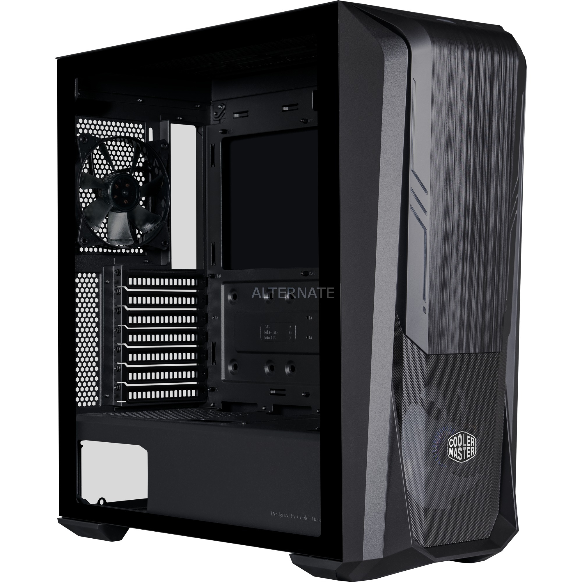 Das Cooler Master MasterBox 500 Tower-Gehäuse bietet ein gutes Preis-Leistungs-Verhältnis und ist einfach zu installieren. Es verfügt über ausreichend Platz für Komponenten und bietet eine gute Kabelmanagement-Lösung, um das Innere des Gehäuses aufgeräumt zu halten.