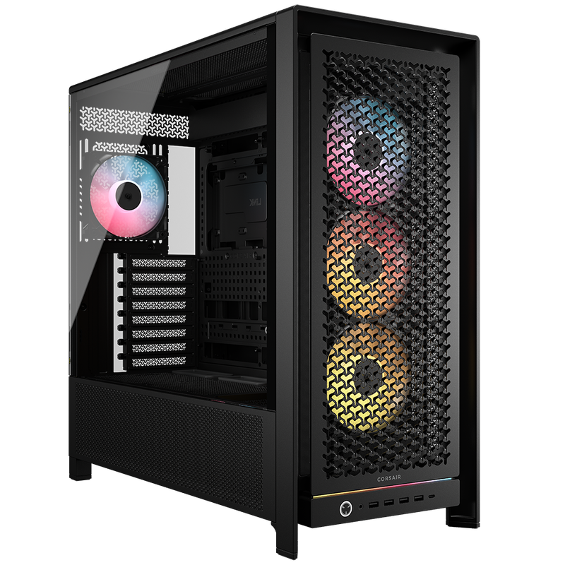 Der Corsair Frame 5000D RS ARGB Midi-Tower überzeugt durch ein elegantes schwarzes Design und eine durchdachte Funktionalität, die sowohl Technik-Enthusiasten als auch Gelegenheitsspieler anspricht. Mit Platz für bis zu 14 Lüfter und vier vorinstallierten RGB-Lüftern bietet er nicht nur eine ansprechende Beleuchtung, sondern auch eine hervorragende Kühlleistung.