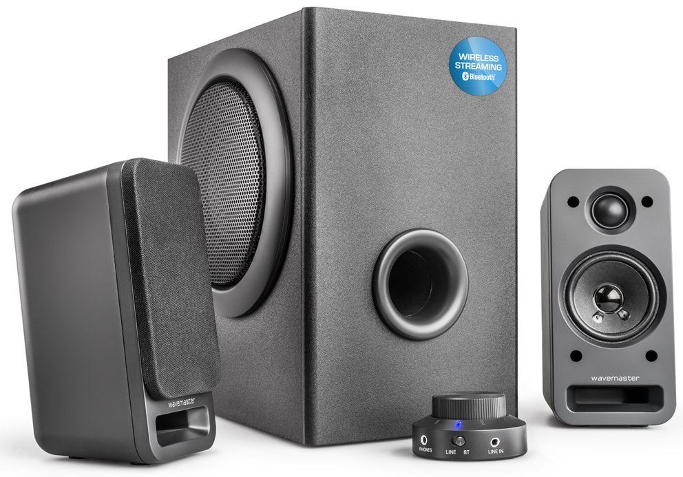 Das Wavemaster MX3+ BT 2.1 Lautsprecher System bietet Ihnen ein beeindruckendes Klangerlebnis mit einem kräftigen Bass, das Ihre Musik, Filme und Spiele zum Leben erweckt. Dank der Bluetooth-Funktion können Sie kabellos von Ihrem TV, Tablet, Smartphone oder PC streamen und so ganz einfach Ihre Lieblingsinhalte genießen. Die hochwertige Haptik des Bedienteils sowie die praktische Lautstärkeregelung am Schreibtisch sorgen für eine komfortable Nutzung. Mit den langen Kabeln haben Sie zudem die Freiheit, die Aktiv-Boxen flexibel zu platzieren.