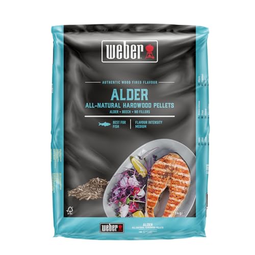 Weber Holzpellets Erlenholz (8kg) - 100% natürliche Pellets, mildes Raucharoma, ideal zum Räuchern von Fisch, passend für alle Pellet Grills