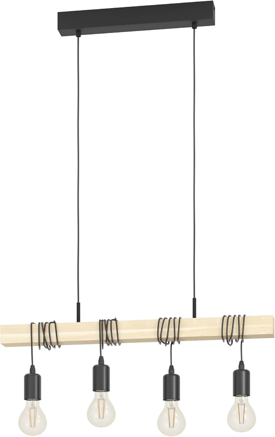 | Name | Eglo 32916 Pendelleuchte TOWNSHEND Stahl schwarz, Holz braun E27 4X40W L:70cm B:10,5cm H:110cm dimmbar |