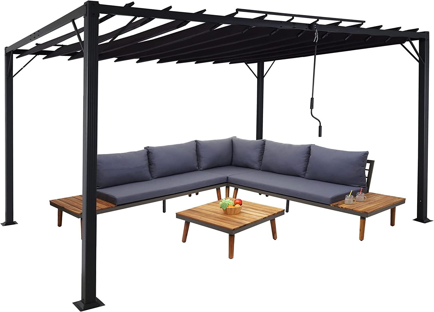| Name | Mendler 'Pergola HWC-L40', Garten Lamellen-Pavillon Terrassenüberdachung, 8cm-Alu-Gestell Stoff/Textil, 3x4 m anthrazit |