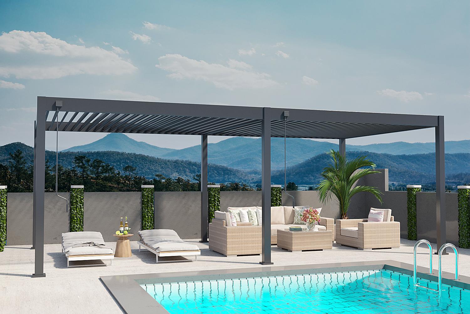 | Name | Weide Deluxe | Pergola Voll Aluminium freistehend | 3,6 x 7,2 M | Lamellendach anthrazit |