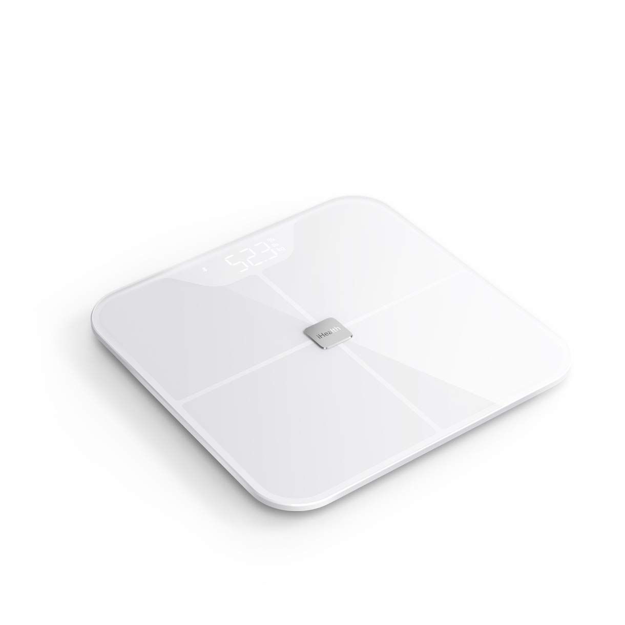 Integriert sich mit der iHealth App zur Verfolgung von Körperdaten und Fortschritten.