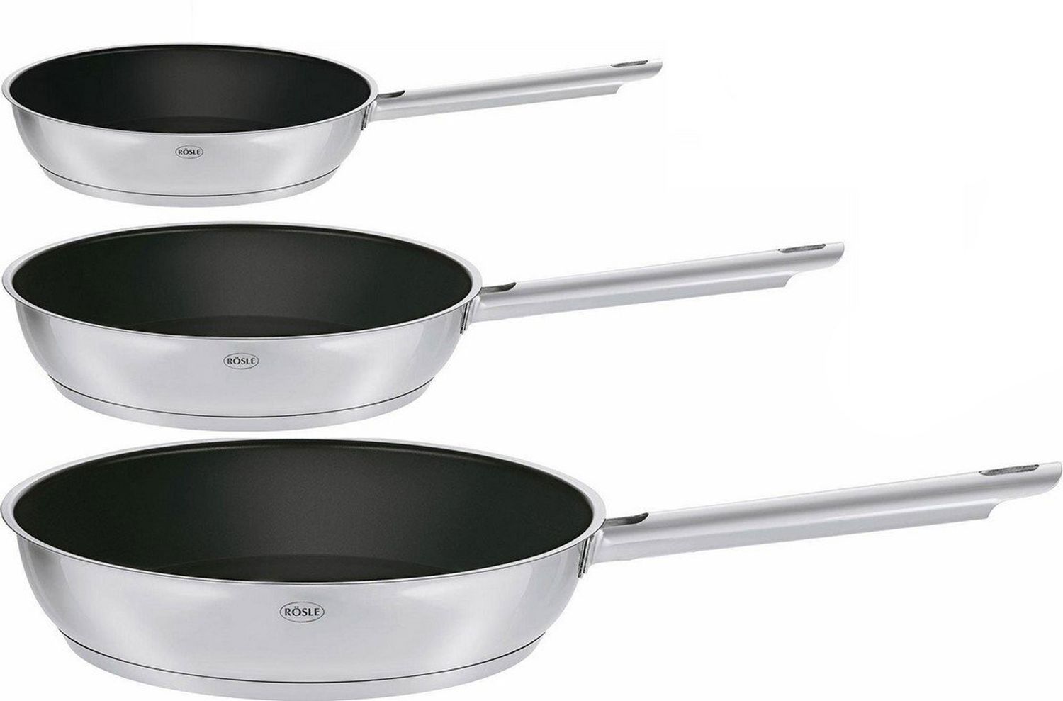 | Name | Rösle 'Elegance' Bratpfannen-Set 3-tlg, Edelstahl silber, Ø 20 cm, Ø 24 cm & Ø 28 cm |