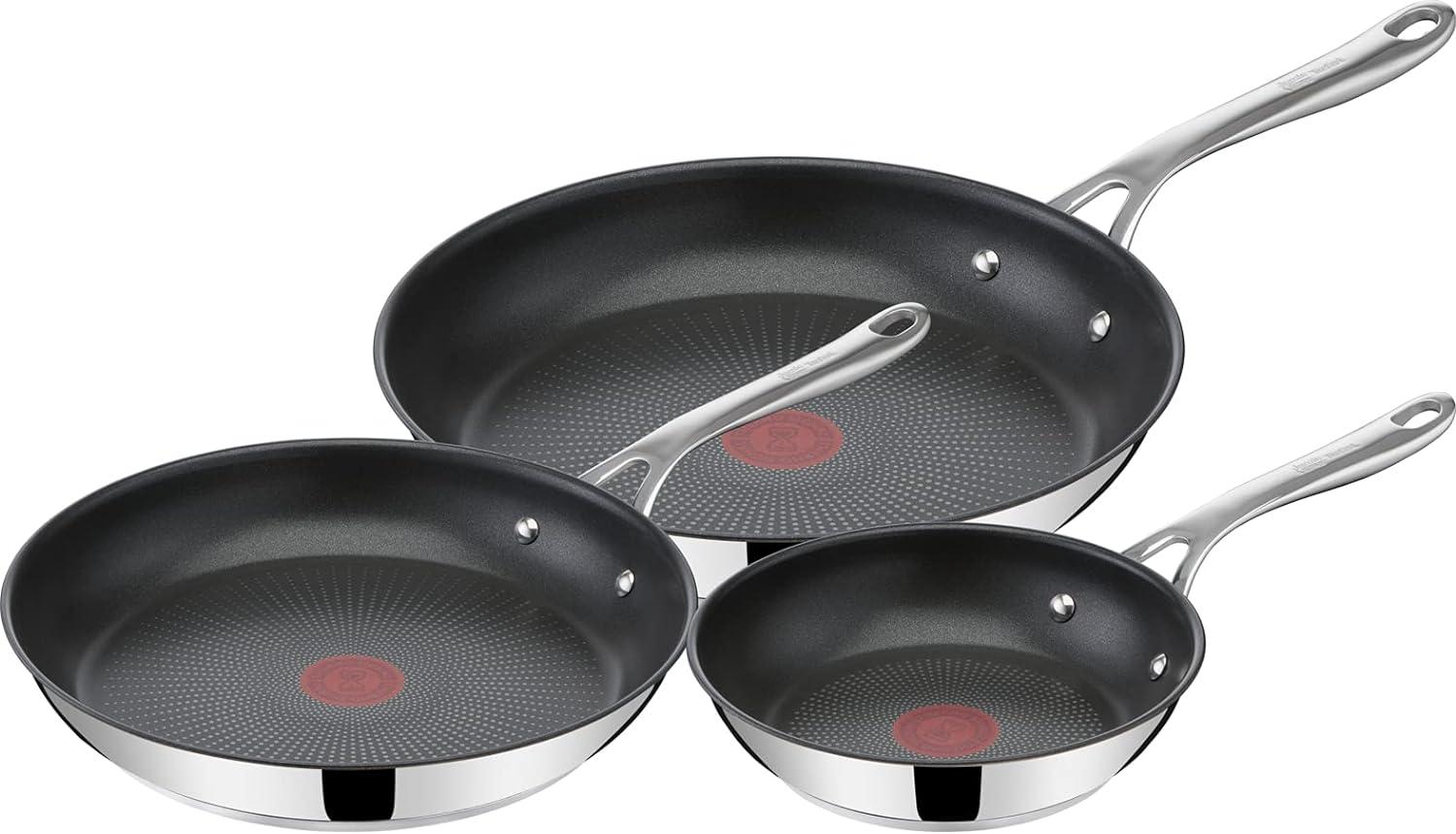 | Name | Jamie Oliver by Tefal Cook's Direct On Pfannen-Set 20/24/28 cm, Antihaft, Induktion, Backofenfest, Edelstahl, Genieteter Griff, E304S344 |