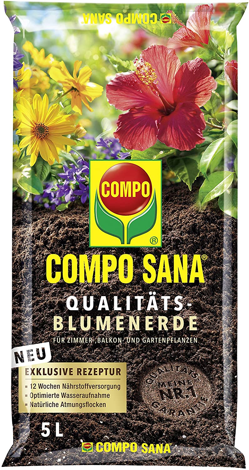 Die COMPO Sana Qualitäts-Blumenerde 5 Liter ist ein hochwertiges Pflanzsubstrat, das sich besonders für die Anzucht und Pflege von Zimmer-, Balkon- und Gartenpflanzen eignet. Das Produkt bietet eine effektive Bekämpfung von Trauermücken, was insbesondere für Indoor-Pflanzen von Vorteil ist. Auch bei Trockenheit bleibt die Blumenerde funktionsfähig und unterstützt so das gesunde Wachstum der Pflanze.