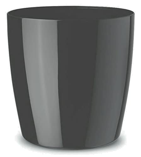 Floralo Teramo Übertopf 25cm Durchmesser x 24cm hoch anthrazitglänzend, in den Boden eingelassene Rollen, silber, grau
