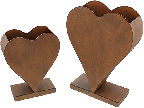 Dekoleidenschaft 2 Pflanzer Rostherz aus Metall in Rost-Optikstehend, Pflanzschale in Herz-Form, Blumentopf, Garten-Deko für Draußen, Hochzeitsdeko, Pflanztopf, Pflanzgefäß