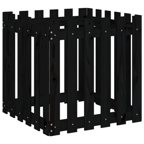 vidaXL PflanzkübelBlumenkübel mit Lattenzaun-Design, Pflanzkasten Übertopf für Garten Terrasse, Blumentopf Blumenkasten, Schwarz 60x60x60 cm Kiefernholz