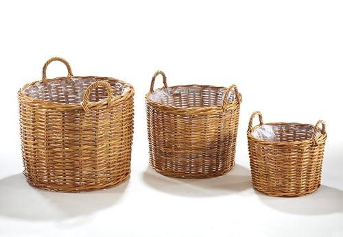 Kobolo Rattanübertopf Pflanzkorb Übertopf – Rattan lacak – rund - mit Folie - 3er Set