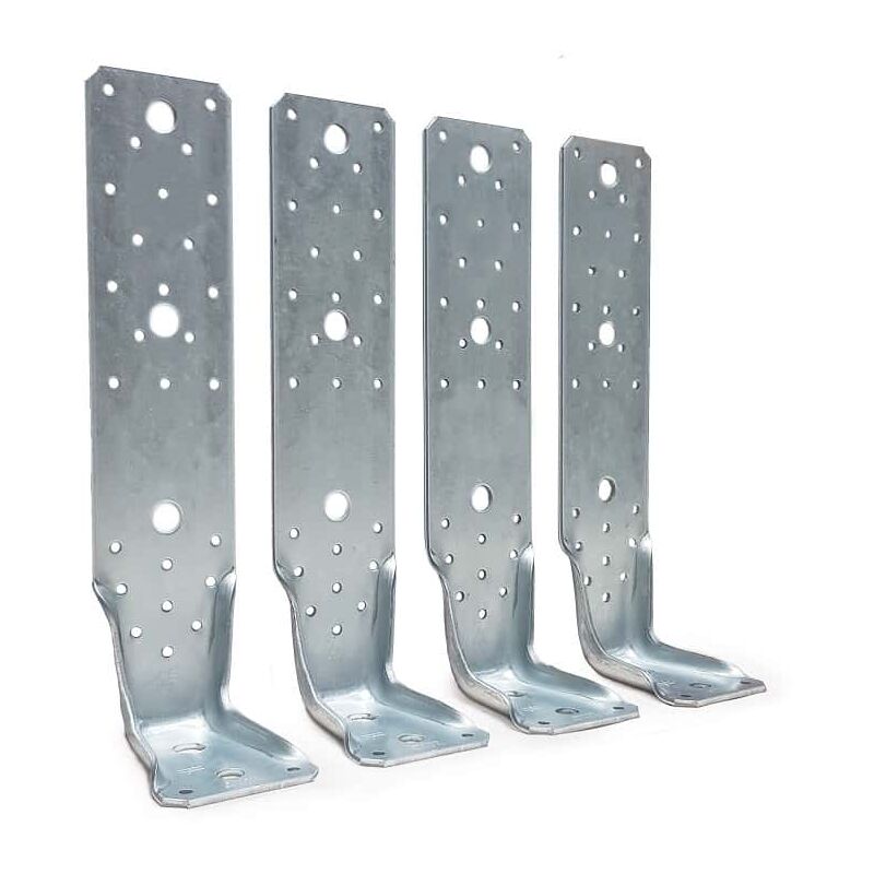 Die Winkelverbinder sind robust und bieten eine hohe Stabilität, besonders geeignet als Sturmsicherung für Gartenhäuser. Sie verfügen über ausreichend Befestigungsmöglichkeiten, jedoch gibt es nur zwei Bohrungen am Fuße, was die Verankerung einschränkt.