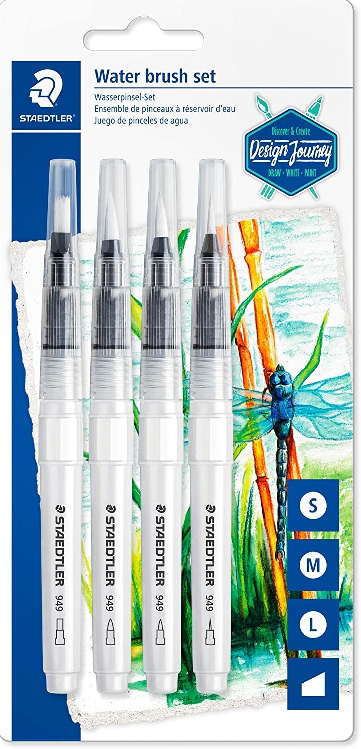 | Name | Staedtler 949-SBK4-C Wasserpinsel (zum Aquarellieren, Malen und Blenden, gleichmäßige Wasserabgabe, robuste Nylonspitze für Formstabilität, Set mit 4 verschiedenen Pinselspitzen) |