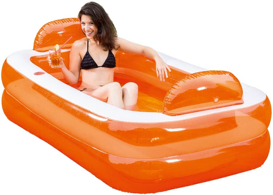 | Name | Happy People 77775 'Relax und Genießer Pool' Planschbecken, mit 2 Rückenlehnen & 2 Getränkehaltern, 195 x 122 x 50 cm, 420 l Fassungsvermögen, ab 14 Jahren, orange |