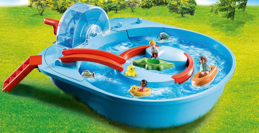 Neben den Mitnehm-Sets hat sich Playmobil noch etwas Anderes fรผr das Spielen an Orten abseits der heimischen vier Wรคnde รผberlegt. Die Produktlinie Aqua ist speziell fรผr kleine Wasserratten, die auch in der Badewanne oder im Planschbecken nicht auf ihr Spielzeug verzichten wollen. Die Wasserbahn mit Strรถmungskanal fรผr die beiliegenden Figuren ist hier das grรถรte Set und kann mit kleineren Zusรคtzen wie der Wasserrutsche ergรคnzt werden. Diese Reihe eignet sich hervorragend zum Spielen im Garten an heiรen Sommertagen. Die neusten Produktzugรคnge wie das Wasserwirbelrad hingegen sind ideal fรผr das Spielen in der Badewanne.