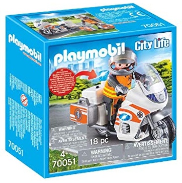 | Name | PLAYMOBIL 70051 City Life Notarzt-Motorrad mit Blinklicht, bunt |
