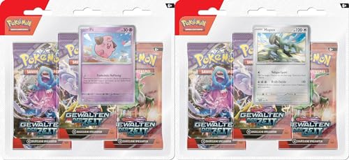 • Das Pokémon Sammelkartenspiel PKM KP05 3-Pack Blister DE enthält 3 Booster-Packs, eine Promo-Karte und eine Code-Karte in einem Blister