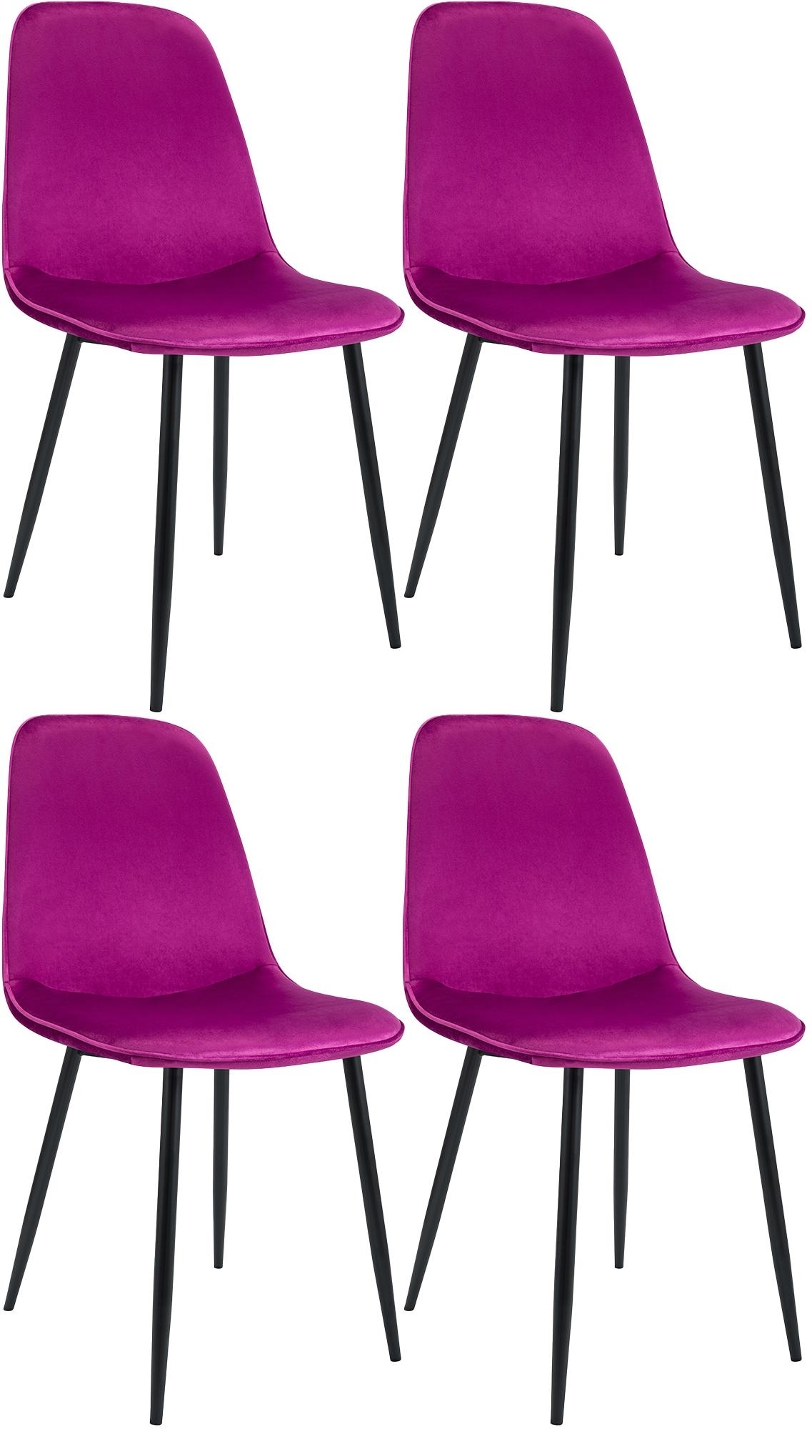 Der Esszimmerstuhl Maryam im 4er Set vereint hohen Sitzkomfort mit einer modernen, zeitlosen Optik. Die angenehme Polsterung von Sitz und Rückenlehne sorgt für ein bequemes Sitzerlebnis. Das standfeste Vierfußgestell aus schwarzem, pulverbeschichtetem Metall bietet eine Belastbarkeit von bis zu 150 kg. Bodenschoner schützen empfindliche Böden vor Beschädigungen. Ideal für Esszimmer, Küche oder Wohnzimmer. **Highlights** - Hoher Sitzkomfort durch angenehme Polsterung - Modernes und zeitloses Design - Standfestes Vierfußgestell aus pulverbeschichtetem Metall - Belastbarkeit bis zu 150 kg - Bodenschoner zum Schutz empfindlicher Böden **Produkteigenschaften** - Material: Samt - Farbe: Lila - Set-Bestandteile: 4x Esszimmerstuhl **Lieferumfang** - 4x Esszimmerstuhl Maryam - Ausschluss von Tisch und Dekoration