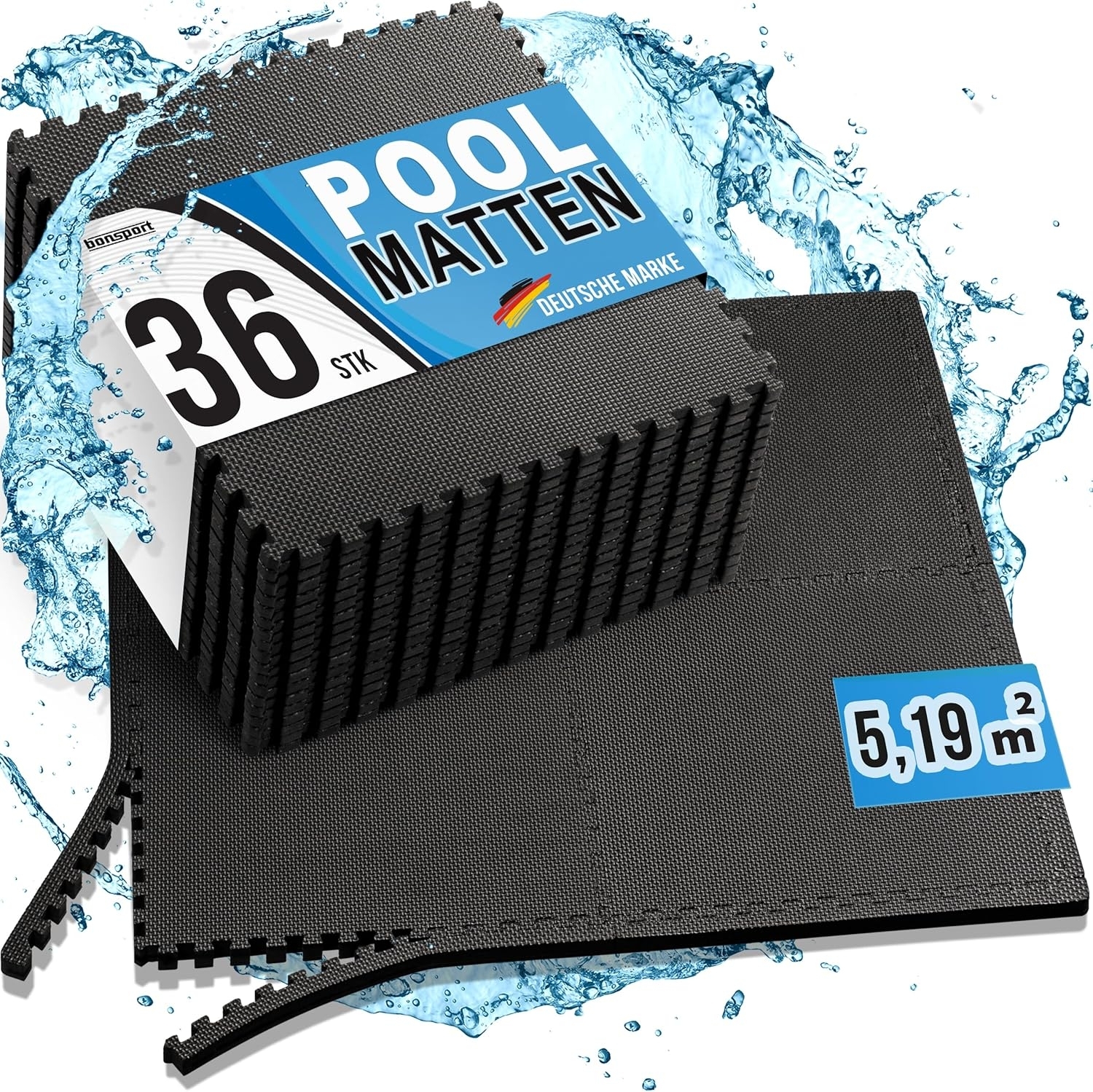 | Name | bonsport Pool Unterlegmatte Poolmatte 36 Stück - Bodenschutz Matte für den Pool/Planschbecken - Bodenfolie Bodenmatte Poolunterlage Bodenschutz schwarz |