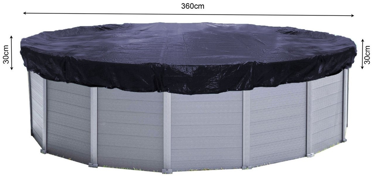 | Beschreibung | Hochwertige QUICK STAR Poolabdeckung für runde Pools mit einem Durchmesser von 320 bis 366 cm. Mit einem Planenmaß von Ø 420 cm und einer robusten, beidseitig beschichteten Plane aus 100% Polyethylen (200g/m²) bietet diese Abdeckung sowohl eine Solar- als auch eine Winterfunktion. Sie ist UV-beständig, temperaturbeständig von -40° C bis +70° C und verhindert Algenbildung durch ihre lichtundurchlässige Beschaffenheit. **Highlights** - Schnelle Erwärmung des Poolwassers durch schwarze Abdeckung - Robuste, beidseitig beschichtete Plane aus 100% Polyethylen - UV-beständig und temperaturbeständig von -40° C bis +70° C - Lichtundurchlässig zur Verhinderung von Algenbildung - Inklusive rostfreies Befestigungsmaterial **Produkteigenschaften** - Planenmaß: Ø 420 cm - Geeignet für Pools mit einem Durchmesser von 320 bis 366 cm - Material: 100% Polyethylen, 200g/m² - Wetterresistent und langlebig - Doppelösen aus Aluminium im Abstand von 1m - Spannschnur und Spannratsche im Lieferumfang enthalten **Lieferumfang** - Poolabdeckung - Befestigungsmaterial (Doppelösen, Spannschnur, Spannratsche) |