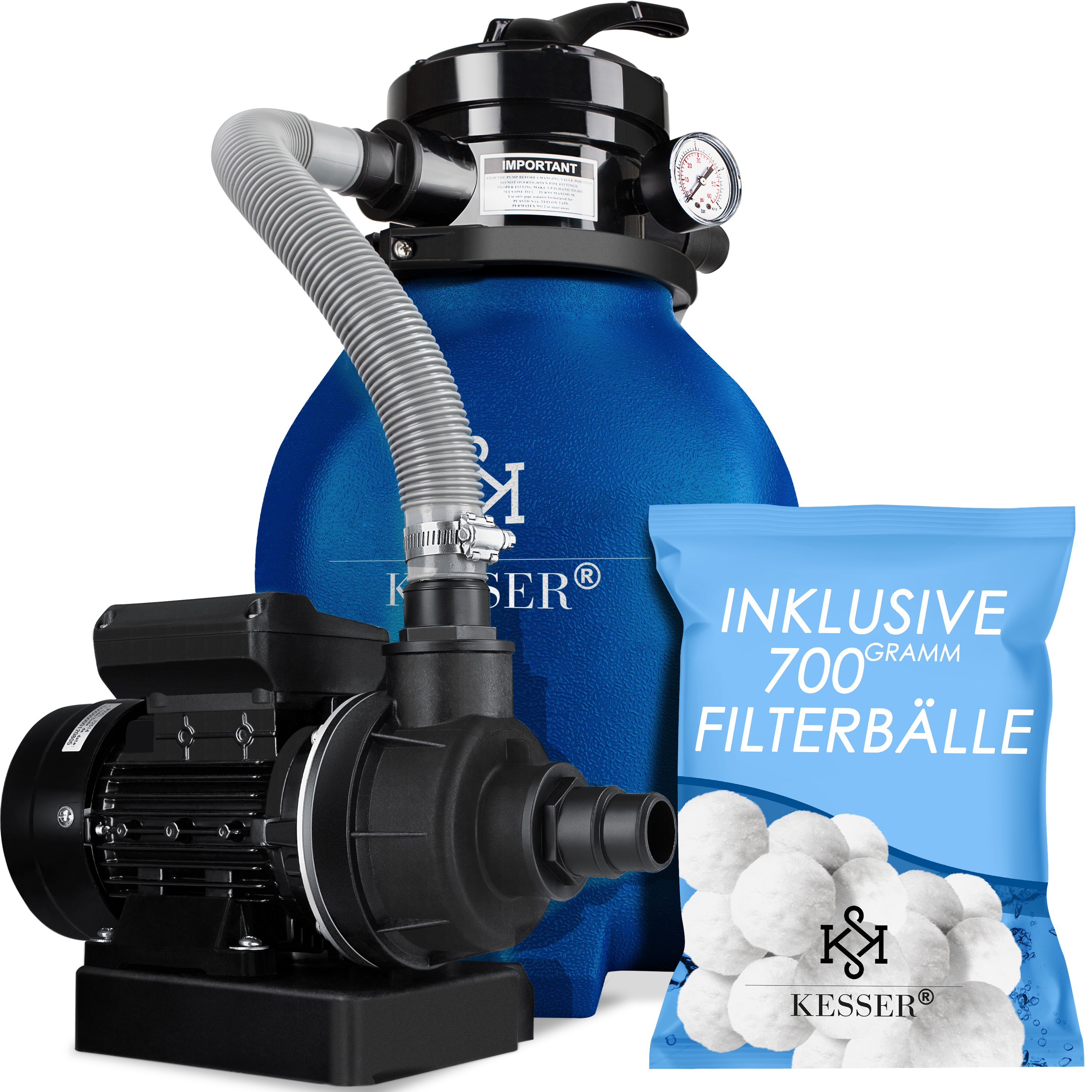 | Set | Sandfilteranlage mit 700 g Filterbällen und 25 kg Filtersand |