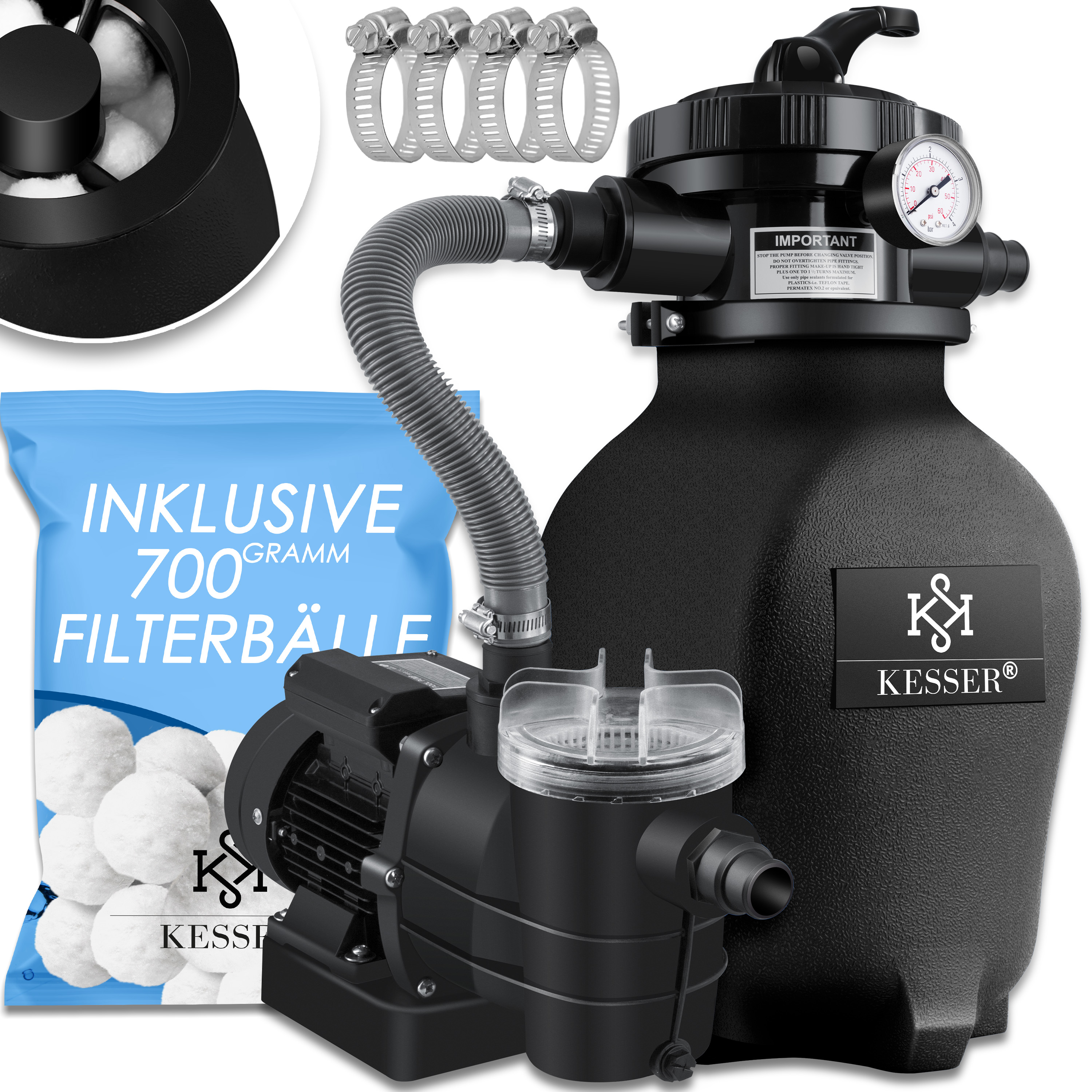 Die KESSER Sandfilteranlage bietet eine effiziente Lösung für die Reinigung von Poolwasser. Mit einem 7-Wege Ventil und einer Druckanzeige ausgestattet, sorgt sie für sauberes Wasser in Ihrem Schwimmbecken. Durch den Einsatz von Filterbällen anstelle von Filtersand wird nicht nur das Gewicht reduziert, sondern auch die Reinigung erleichtert, da die Bälle einfach in der Waschmaschine gereinigt werden können.