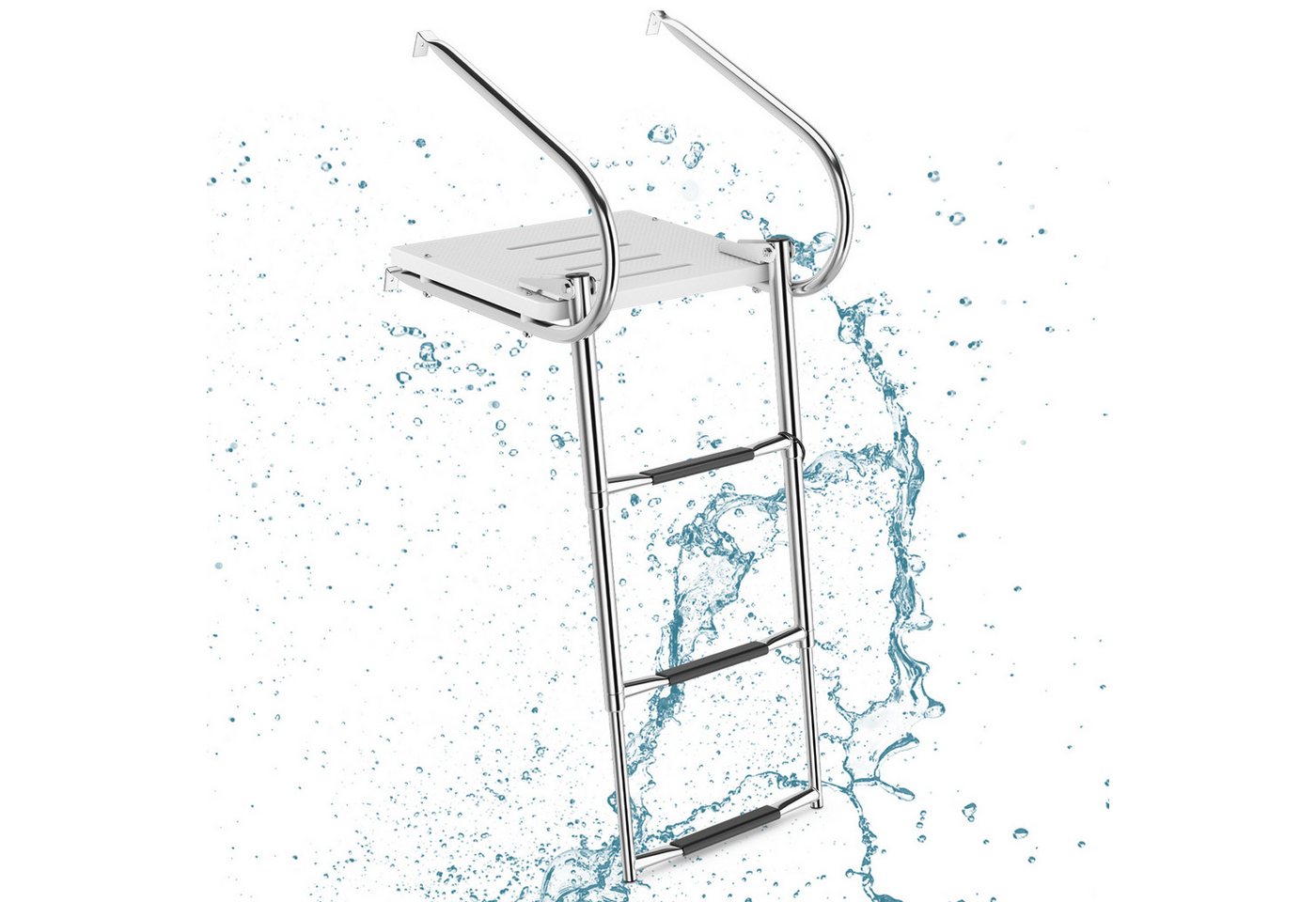 • Die klappbare Poolleiter von KOMFOTTEU mit Plattform ist ideal für Bootsnutzer, Taucher und Schwimmer