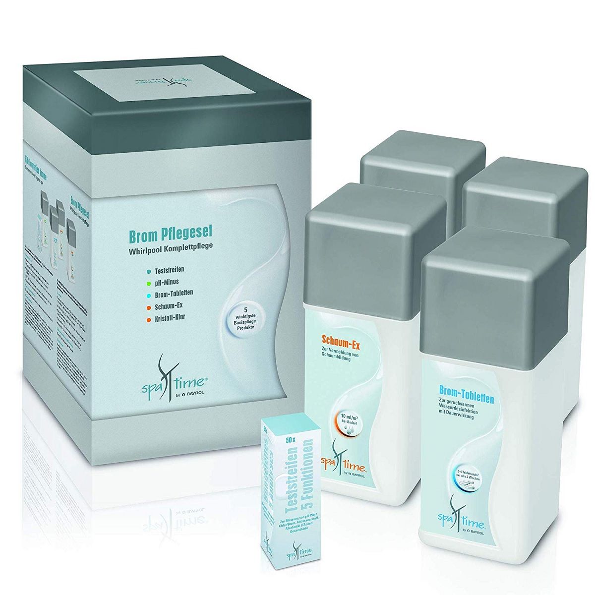 • Das Bayrol SpaTime Whirlpool Brom Pflegeset ist speziell für Whirlpools zusammengestellt und bietet eine geruchsarme Alternative zu Chlorprodukten.