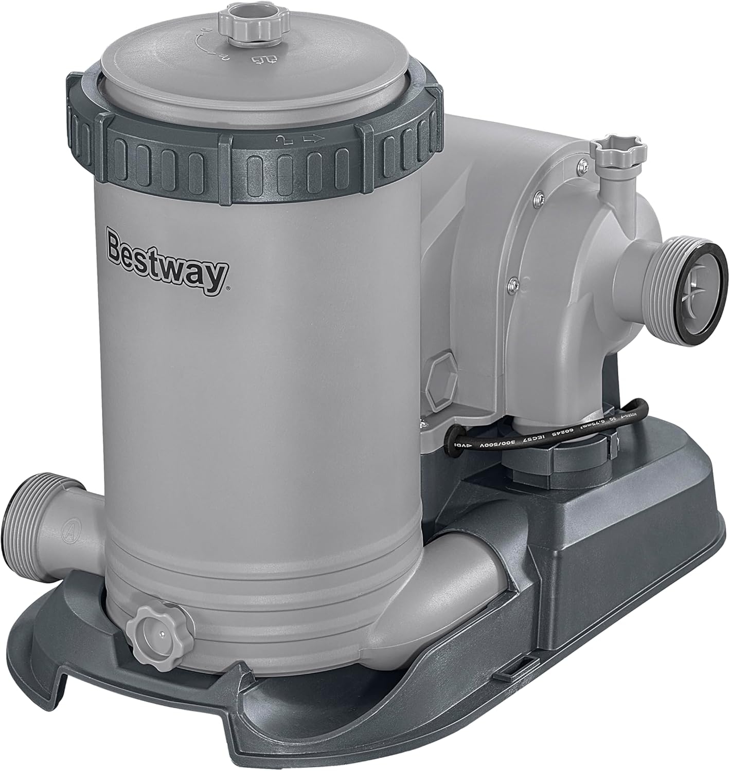 Filterpumpe 9.463 l/h, 350 W Leistungsstarke Effizienz: Mit der Bestway® Filterpumpe, die eine beeindruckende Pumpenleistung von 9.463 Litern pro Stunde bietet, bleibt Dein Pool immer kristallklar. Egal, ob Du einen kleinen Pool mit 1.100 Litern oder ein großes Schwimmbecken mit bis zu 62.000 Litern hast, diese Pumpe sorgt für sauberes und einladendes Wasser – und das mit minimalem Wartungsaufwand. Zuverlässige Technologie: Die GS-Zertifizierung durch DEKRA garantiert zusammen mit dem integrierten Personenschutzschalter höchste Sicherheitsstandards. Umfassende Ausstattung: Die Bestway® Filterpumpe wird mit einer hochwertigen Filterkartusche der Größe IV (14,2 x 25,4 cm) geliefert, die für exzellente Filterergebnisse sorgt. Zwei Schläuche von je 4,5 m Länge und 38 mm Durchmesser sowie praktische Pooleinlass- und Poolauslass-Siebe (Ø 38 mm) und zwei Ø 32-mm-Adapter bieten Dir maximale Flexibilität bei der Installation und Nutzung. Dank des effizienten Designs ist der Wartungsaufwand minimal – so bleibt mehr Zeit für den Badespaß. Benutzerfreundlich und vielseitig: Der Ø 38-mm-Anschluss garantiert eine einfache Installation und ist mit den meisten Poolsystemen kompatibel. Diese Pumpe eignet sich für verschiedene Poolgrößen und ist die perfekte Wahl für Poolbesitzer mit unterschiedlichen Bedürfnissen. Der geringe Wartungsaufwand sorgt dafür, dass Du Dich nicht umständlich um die Technik kümmern musst. Kundenservice, auf den Du Dich verlassen kannst: Unser engagiertes Kundenserviceteam ist jederzeit für Dich da, um Dir bei allen Fragen zur Bestway® Filterpumpe zu helfen. Egal, ob Du Unterstützung bei der Installation benötigst, Fragen zur Wartung hast oder Ersatzteile benötigst – wir sorgen dafür, dass Dein Badeerlebnis reibungslos und angenehm bleibt, ohne viel Aufwand. Produktdetails • Technische Daten: • • 220-240 V, 350 W, Schutzklasse I, auch geeignet für den Betrieb in DE / BE / LU • Pumpenleistung: 9.463 l/h • Durchflussrate: 7.760 l/h • Ø 38-mm-Anschluss • Für Poolgrößen von 1.100-62.000 Liter • GS-zertifiziert (DEKRA) • Personenschutzschalter • Lieferumfang: • • Filterkartusche #58095 Gr. IV (14,2 x 25,4 cm) • 2x Schläuche à 4,5 m / Durchmesser 38 mm • 1x Pooleinlass-Sieb, 1x Poolauslass-Sieb für Ø 38 mm • Ø 32-mm-Adapter + Gewinde (je 2 Stück) • Farbkarton • Kundenservice Warnhinweise: Achtung! Vor dem Gebrauch sollte die Bedienungsanleitung durchgelesen und stets sorgfältig aufbewahrt werden. Kinder sollten sich nur mit der Aufsicht durch eine erwachsene Person am oder im Pool aufhalten! *Hinweis: - Wenn Ihr Bestway®-Produkte gekauft habt, verwendet ausschließlich originale Ersatzteile & Zubehör von Bestway® - auch nach Ablaufen der Garantie. Solltet Ihr doch Fremd-Komponenten benutzen oder verbauen, übernimmt Bestway® KEINE Haftung für mögliche Schäden.