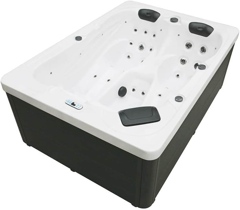 Der HOME DELUXE Outdoor Whirlpool SUNSET PURE bietet Platz für bis zu 3 Personen und verwandelt Ihren Garten in eine stilvolle Wellness-Oase. Mit seinen großzügigen Abmessungen von 220 x 156 x 82 cm und einer Füllhöhe von 65 cm sorgt er für ein entspannendes Badeerlebnis. 32 Massagedüsen und 13 Lichtquellen schaffen eine angenehme Atmosphäre, während die Heizung für die perfekte Wassertemperatur sorgt. **Highlights** - 32 Massagedüsen für individuelles Massagevergnügen - 13 Lichtquellen für stimmungsvolle Beleuchtung - Einfache Steuerung über Touch-Bediendisplay - Zwei große Liegeflächen mit Kopfkissen - Robuste Materialien: Acryl, Aluminium und PVC **Produkteigenschaften** - Maße (L x B x H): 220 x 156 x 82 cm - Füllvolumen: 820 l - Gesamtleistung: 3850 W - Heizleistung: 2000 W - Lautstärke: ca. 68 dB - Gewicht: 230 kg - 2 schwarze Kopfstützen - Einfache Montage **Lieferumfang** - Whirlpool SUNSET PURE - 2 x Kopfstützen - Paketmaße: 222 x 80 x 170 cm