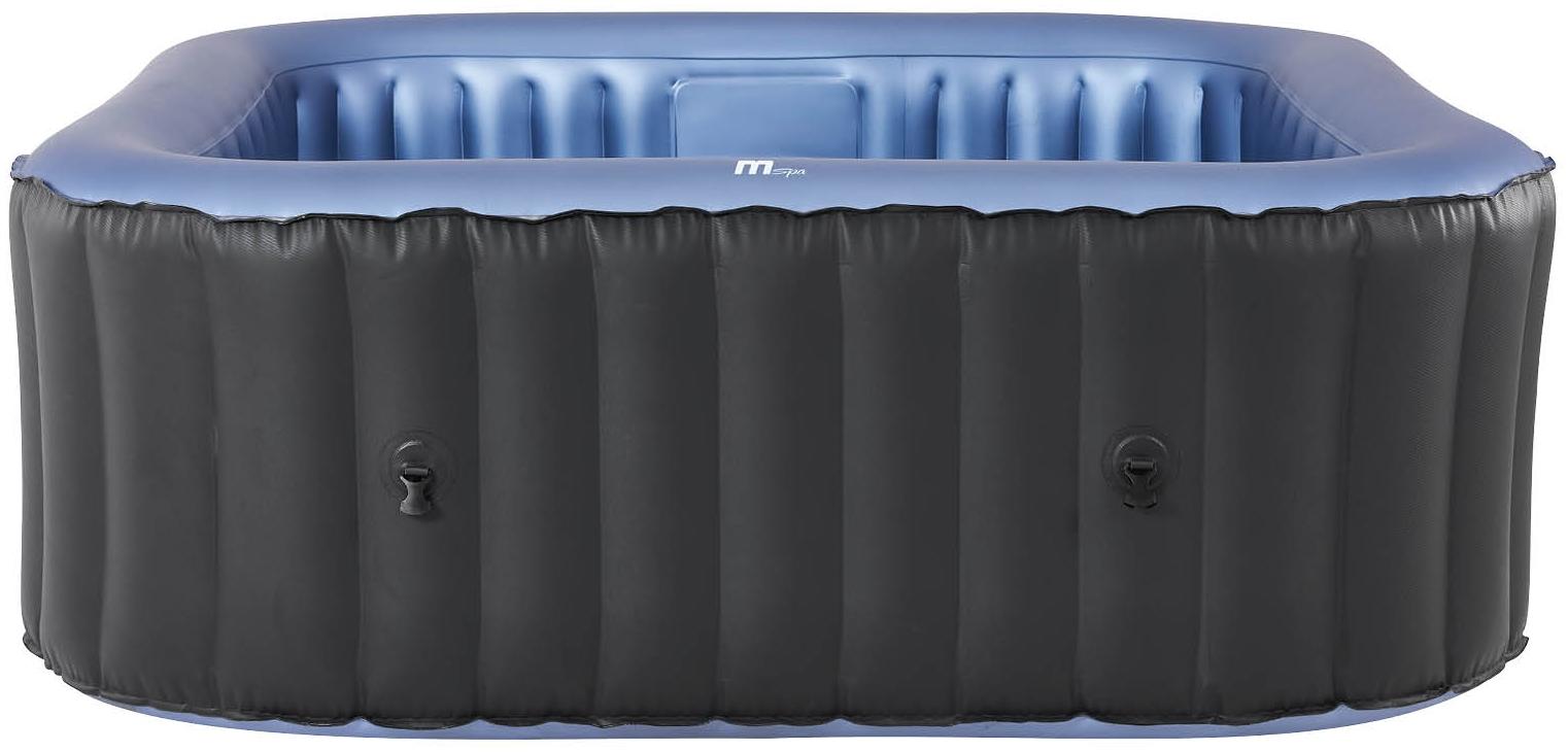 **BRAST 'MSpa TEKAPO' Whirlpool, aufblasbar, für 4 Personen, In-Outdoor Pool, 108 Massagedrüsen, Aufblasfunktion per Tastendruck, 158 x 158 x 68 cm** - 4 Personen / eckig: 158 x 158 x 68 cm - Garten Whirlpool mit 108 Luft-Massagedüsen - Indoor & Outdoor nutzbar **Technische Daten** - Aufblasbarer Whirlpool M Spa 'Tekapo Comfort' für 4 Personen - Gesamtleistung: 2. 100 Watt, 1. 500 Watt Heizung + 600 Watt Massagedüsen - Spannung: 220-240V/50 Hz mit 5,10 Meter Anschlusskabel - Filterpumpe: 12V/35W, 1. 325 Liter/h - 6-Schicht verstärktes PVC-Spezialgewebe - PTC-Heizung 20-40°C - UVC-Desinfektion: 2. 000u W - Größe: 158 x 158 x 68 cm (Innen 118 x 118 x 68 cm) - Kapazität: 4 Personen - 108 Massagedüsen - Füllmenge: 650 Liter - Aufheizzeit 2-2,5°C pro Stunde - Gewicht (ohne Wasser): 21kg - Farbe: anthrazit (Außen), metallic-blau (Innen) **Aufblasbarer Whirlpool M Spa 'Tekapo Comfort' für 4 Personen** **Entspannend:** 108 360° Luftsprudel-Massagedüsen mit Tausenden von Blasen sorgen für ein gleichmäßiges und flächenverteiltes Massageerlebnis. Dank seiner ausgeklügelten Bauweise ist unser Whirlpool im Betrieb einer der leisesten Whirlpools der Welt. Dank wasserfester digitaler Kabelfernbedienung mit Smart-Touch-Tasten zur zentralen Steuerung der Wassertemperatur, der Massagedüsen, des Timers, des UVC-Generators sowie des Filtersystems mit Statusanzeige auf dem LED-Display ist eine komfortable Bedienung aller Funktionen auch während Sie sich im Pool aufhalten möglich. Gradgenaue Wohlfühl-Wassertemperatur bis 40°C einstellbar. **Natürlich hygienisch:** Der neue UVC-Desinfektions-Generator tötet mit Hilfe von natürlichem ultravioletten Licht (UV-C) bis zu 95% Bakterien und andere pathogene Keime effizient und sicher und hilft so, die Verwendung von chemischen Hilfsmitteln zur Wasserhygiene stark zu reduzieren. Bei Aktivierung über Tastendruck werden so über 60 Krankheitserreger im Dauerschutz 24/7 nur mit Licht abgetötet und das völlig ungefährlich und sicher für Ihre Haut und Augen. **Antibakterielles Gewebe:** Wir haben auf der Innenhaut des Whirlpools, das mit Wasser in Berührung kommt, ein antibakterielles Gewebe verwendet, das hilft, die Vermehrung von Bakterien um 99% gemäß ISO 22196:2011 zu reduzieren. Dies unterstützt Sie neben den anderen Maßnahmen zur Wasserbehandlung ein hygienisches Wassermilieu aufrechtzuerhalten. Automatische Filterung des Wassers von Verunreinigungen , die Sie zusätzlich noch manuell über die Fernbedienung steuern können. Unser Filter ist mit 90 Lamellen und 4. 000 Quadratzentimeter Fläche eines der effektivsten Filtersysteme für Whirlpools; die Pumpe hat dabei gegenüber dem Vorgängermodell jetzt noch mehr Saugkraft. **Ganzjährige Nutzung:** Ganzjährige Nutzung 12 Monate im Jahr, im Sommer mit ausgeschalteter Heizfunktion bzw. einer Wohlfühltemperatur ab 20°C zur Abkühlung und in der kühlen Jahreszeit bei bis zu 40°C Wassertemperaturen im trauten Heim oder Garten genießen! Dank PTC-Heiztechnologie schnelle Aufheizzeit bis 2,5°C/h. Anti-Frost-Technologie zur ganzjährigen Benutzung des Pools auch im Winter: Wenn die Wassertemperatur Ihres Whirlpools unter 1°C fallen sollte, schaltet sich die Heizung automatisch ein, bis das Wasser eine Temperatur von 3°C erreicht. Dies verhindert ein Einfrieren des Wassers und hilft, Schäden an Pumpe, Heizung und Rohren zu vermeiden. **Sicher:** Wasser und Strom - wir gehen auf Nummer sicher: Der TÜV hat dieses Produkt ausgiebig getestet und geprüft und ihm das Prüfsiegel 'geprüfte Sicherheit' verliehen. Ein spezieller 1cm dicker Anti-Rutsch-Boden ermöglicht Ihnen ein sicheres Ein-und Aussteigen sowie ein bequemes Sitzen im Whirlpool. Inkl. Kindersicherung. Sie können über die Fernbedienung alle Funktionen vor unerlaubter Verwendung ganz einfach sperren und entsperren. **Stromsparend:** Integrierter Energiespar-Timer von 1 bis 99 Stunden zur Reduktion von Energiekosten, indem Sie die Heizung automatisch vorab so einschalten können, dass der Whirlpool zur gewünschten Zeit auch die gewünschte Wassertemperatur hat. Patentierte PTC-Keramik-Technologie mit Schnellheizsystem und regelbarer Wassertemperatur bis 40°C sowie Abschalt- und Standby-Automatik, dadurch erheblich längere Lebensdauer und weniger Energiekosten bei kürzerer Aufheizzeit und höherer Energieeffizienz im Vergleich zu Edelstahl-Heizsystemen. Die im Lieferumfang enthaltene alu-isolierende Abdeckung hilft, Energiekosten zu sparen, indem die Wärme im Pool bleibt. Zur weiteren Isolierung empfehlen wir Ihnen die Verwendung einer aufblasbaren Thermoabdeckung (nicht im Lieferumfang enthalten, als Zubehör gleich mitbestellen). **Robust:** Die verwendete Materialtechnologie Rhino Tech™ spezialverstärktes 6-Schicht-PVC-Gewebe bietet Ihnen viele Vorteile: - Unser Material wird auch in der Marine-Industrie verwendet! Es ist durch eine spezielle Außen-Beschichtung UV- und Frost-resistent sowie reiß- und abriebfest und somit erheblich wetter- und reißfester! - Unser Material ist durch die Verw