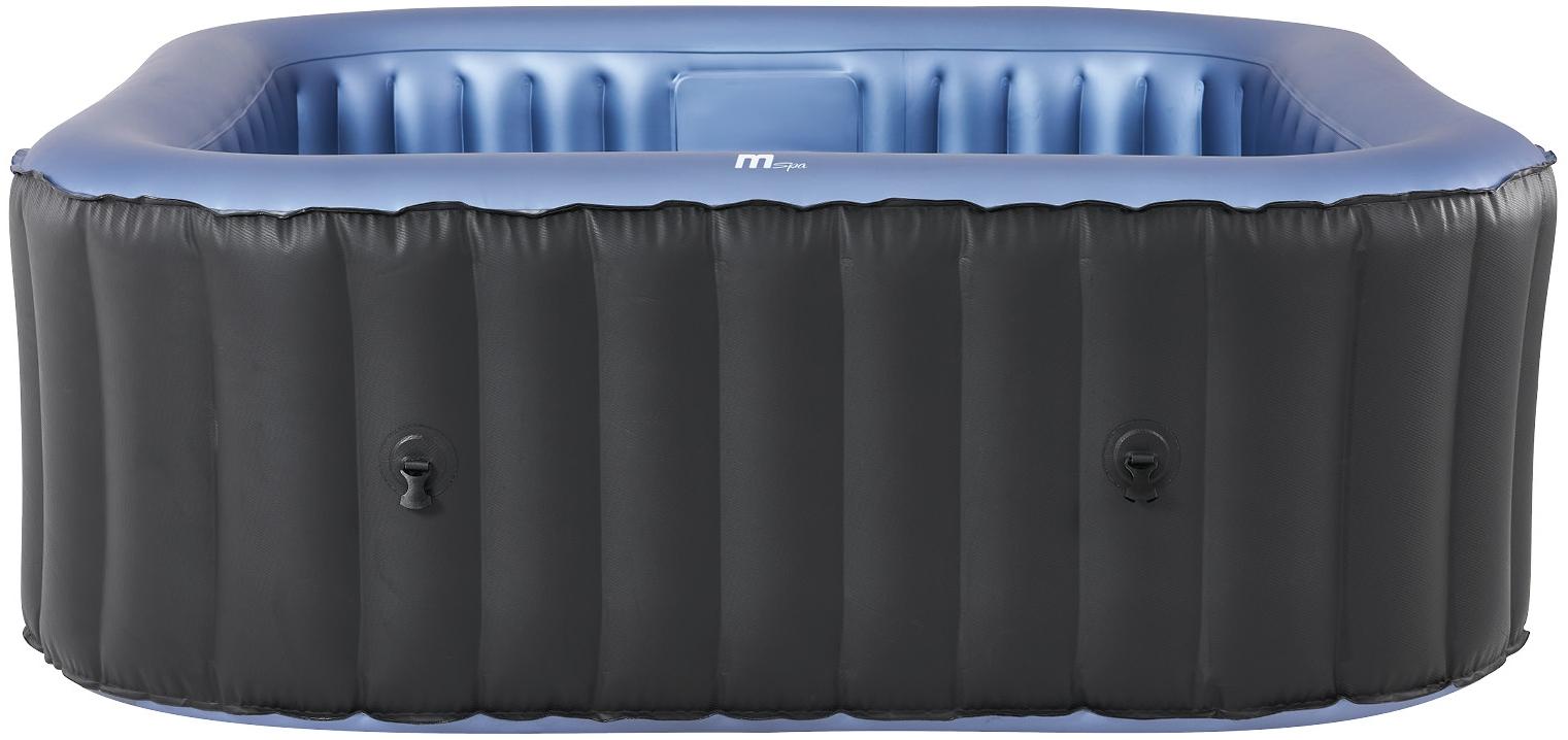 **BRAST 'MSpa TEKAPO' Whirlpool, aufblasbar, für 6 Personen, In-Outdoor Pool, 132 Massagedrüsen, Aufblasfunktion per Tastendruck, 185x185 cm** - 6 Personen / eckig: 185 x 185 x 68 cm - Outdoor Whirlpool mit 132 Luft-Massagedüsen - winterfester Outdoor Whirlpool **Technische Daten** - Aufblasbarer Whirlpool M Spa 'Tekapo Comfort' für 6 Personen - Gesamtleistung: 2. 100 Watt, 1. 500 Watt Heizung + 600 Watt Massagedüsen - Spannung: 220-240V/50 Hz mit 5,10 Meter Anschlusskabel - Filterpumpe: 12V/35W, 1. 325 Liter/h - 6-Schicht verstärktes PVC-Spezialgewebe - PTC-Heizung 20-40°C - UVC-Desinfektion: 2. 000u W - Größe: 185 x 185 x 68 cm (Innen 145 x 145 x 68 cm) - Kapazität: 6 Personen - 132 Massagedüsen - Füllmenge: 930 Liter - Aufheizzeit 1,2-1,8°C pro Stunde - Gewicht (ohne Wasser): 23,5kg - Farbe: anthrazit (Außen), metallic-blau (Innen) **Aufblasbarer Whirlpool M Spa 'Tekapo Comfort' für 6 Personen** **Entspannend:** 132 360° Luftsprudel-Massagedüsen mit Tausenden von Blasen sorgen für ein gleichmäßiges und flächenverteiltes Massageerlebnis. Dank seiner ausgeklügelten Bauweise ist unser Whirlpool im Betrieb einer der leisesten Whirlpools der Welt. Dank wasserfester digitaler Kabelfernbedienung mit Smart-Touch-Tasten zur zentralen Steuerung der Wassertemperatur, der Massagedüsen, des Timers, des UVC-Generators sowie des Filtersystems mit Statusanzeige auf dem LED-Display ist eine komfortable Bedienung aller Funktionen auch während Sie sich im Pool aufhalten möglich. Gradgenaue Wohlfühl-Wassertemperatur bis 40°C einstellbar. **Natürlich hygienisch:** Der neue UVC-Desinfektions-Generator tötet mit Hilfe von natürlichem ultravioletten Licht (UV-C) bis zu 95% Bakterien und andere pathogene Keime effizient und sicher und hilft so, die Verwendung von chemischen Hilfsmitteln zur Wasserhygiene stark zu reduzieren. Bei Aktivierung über Tastendruck werden so über 60 Krankheitserreger im Dauerschutz 24/7 nur mit Licht abgetötet und das völlig ungefährlich und sicher für Ihre Haut und Augen. **Antibakterielles Gewebe:** Wir haben auf der Innenhaut des Whirlpools, das mit Wasser in Berührung kommt, ein antibakterielles Gewebe verwendet, das hilft, die Vermehrung von Bakterien um 99% gemäß ISO 22196:2011 zu reduzieren. Dies unterstützt Sie neben den anderen Maßnahmen zur Wasserbehandlung ein hygienisches Wassermilieu aufrechtzuerhalten. Automatische Filterung des Wassers von Verunreinigungen , die Sie zusätzlich noch manuell über die Fernbedienung steuern können. Unser Filter ist mit 90 Lamellen und 4. 000 Quadratzentimeter Fläche eines der effektivsten Filtersysteme für Whirlpools; die Pumpe hat dabei gegenüber dem Vorgängermodell jetzt noch mehr Saugkraft. **Ganzjährige Nutzung:** Ganzjährige Nutzung 12 Monate im Jahr, im Sommer mit ausgeschalteter Heizfunktion bzw. einer Wohlfühltemperatur ab 20°C zur Abkühlung und in der kühlen Jahreszeit bei bis zu 40°C Wassertemperaturen im trauten Heim oder Garten genießen! Dank PTC-Heiztechnologie schnelle Aufheizzeit. Anti-Frost-Technologie zur ganzjährigen Benutzung des Pools auch im Winter: Wenn die Wassertemperatur Ihres Whirlpools unter 1°C fallen sollte, schaltet sich die Heizung automatisch ein, bis das Wasser eine Temperatur von 3°C erreicht. Dies verhindert ein Einfrieren des Wassers und hilft, Schäden an Pumpe, Heizung und Rohren zu vermeiden. **Sicher:** Wasser und Strom - wir gehen auf Nummer sicher: Der TÜV hat dieses Produkt ausgiebig getestet und geprüft und ihm das Prüfsiegel 'geprüfte Sicherheit' verliehen. Ein spezieller 1cm dicker Anti-Rutsch-Boden ermöglicht Ihnen ein sicheres Ein-und Aussteigen sowie ein bequemes Sitzen im Whirlpool. Inkl. Kindersicherung. Sie können über die Fernbedienung alle Funktionen vor unerlaubter Verwendung ganz einfach sperren und entsperren. **Stromsparend:** Integrierter Energiespar-Timer von 1 bis 99 Stunden zur Reduktion von Energiekosten, indem Sie die Heizung automatisch vorab so einschalten können, dass der Whirlpool zur gewünschten Zeit auch die gewünschte Wassertemperatur hat. Patentierte PTC-Keramik-Technologie mit Schnellheizsystem und regelbarer Wassertemperatur bis 40°C sowie Abschalt- und Standby-Automatik, dadurch erheblich längere Lebensdauer und weniger Energiekosten bei kürzerer Aufheizzeit und höherer Energieeffizienz im Vergleich zu Edelstahl-Heizsystemen. Die im Lieferumfang enthaltene alu-isolierende Abdeckung hilft, Energiekosten zu sparen, indem die Wärme im Pool bleibt. Zur weiteren Isolierung empfehlen wir Ihnen die Verwendung einer aufblasbaren Thermoabdeckung (nicht im Lieferumfang enthalten, als Zubehör gleich mitbestellen). **Robust:** Die verwendete Materialtechnologie Rhino Tech™ spezialverstärktes 6-Schicht-PVC-Gewebe bietet Ihnen viele Vorteile: - Unser Material wird auch in der Marine-Industrie verwendet! Es ist durch eine spezielle Außen-Beschichtung UV- und Frost-resistent sowie reiß- und abriebfest und somit erheblich wetter- und reißfester! - Unser Material ist durch die Verwendung eines
