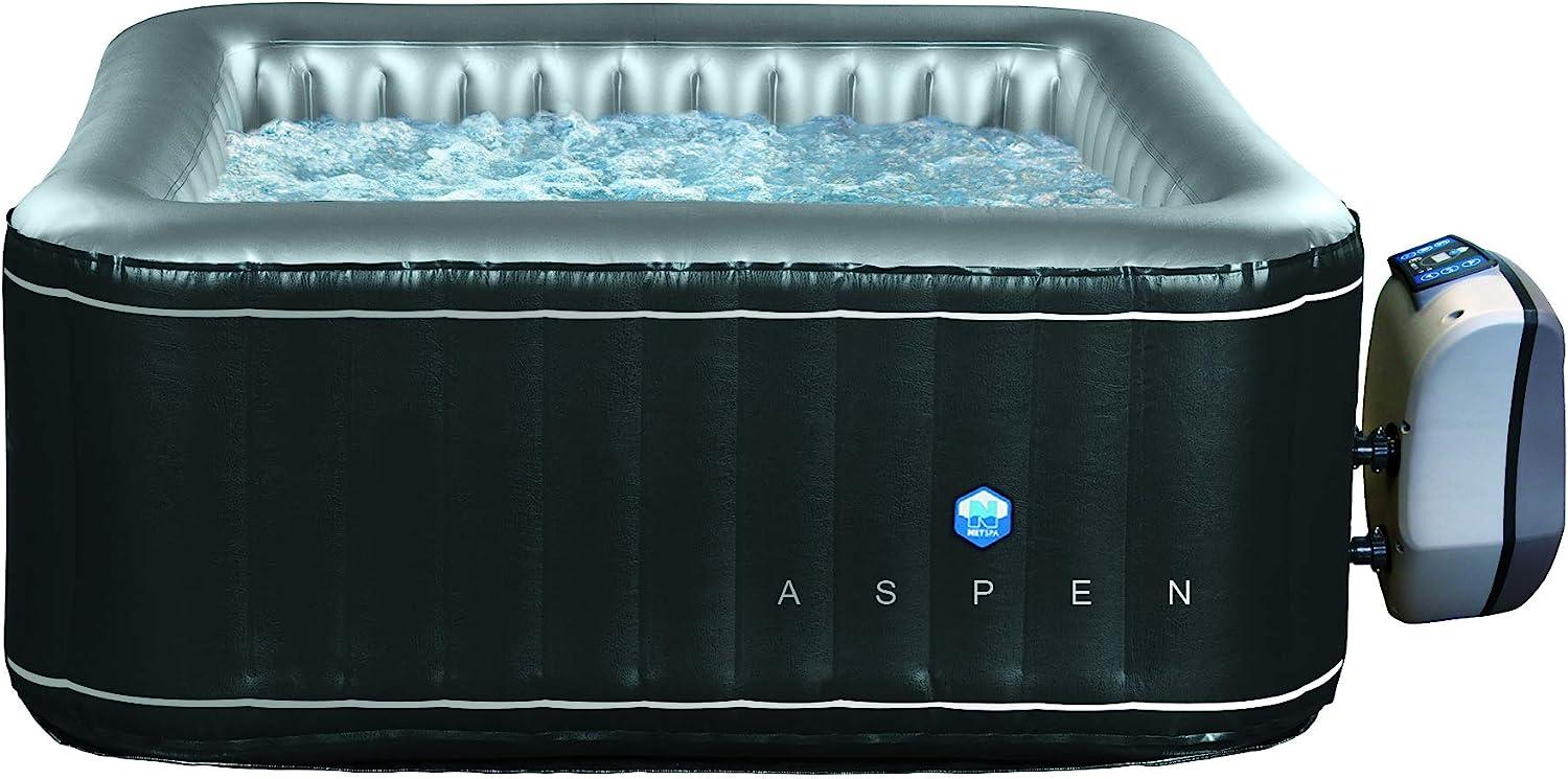 JUNG ASPEN SPA Whirlpool 168x168 cm4 Pers, Selbstaufblasend, Beheizter Outdoor & Indoor Pool, Antibakterielles Kunstleder, Sicherheit, Energieeffizienz, Massage-Luftdüsen, Für Winter und Sommer