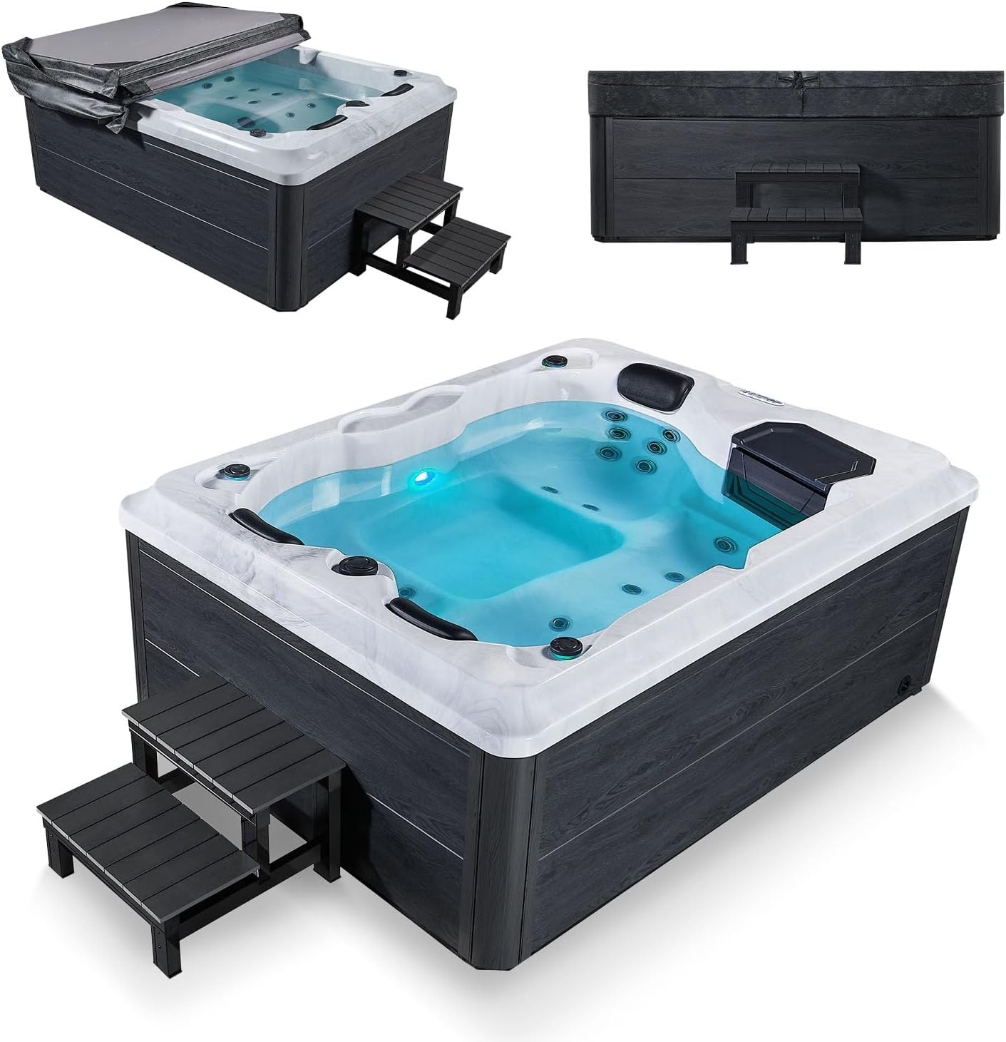 | Name | Artsauna Outdoor Whirlpool Oasis mit Treppe - Spa mit Massagedüsen, LED-Beleuchtung, 2 Filter, Abdeckung, Pumpe - Whirlpool winterfest & beheizbar |