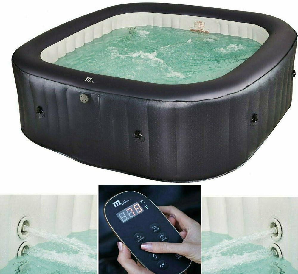 XXL Luxus Whirlpool aufblasbar MSPA 2024 für bis zu 6 Personen. Mit einem Maß von 185 x 185 x 68 cm bietet dieser Whirlpool eine großzügige Liegefläche. Ausgestattet mit 125 Massagedüsen und 6 Hydromassagedüsen sorgt er für tiefste Entspannung. Die moderne PTC-Heiztechnologie ermöglicht eine Wassertemperatur von bis zu 40 Grad. Der Whirlpool verfügt über eine Selbstreinigungsfunktion, UVC- und Ozondesinfektion sowie ein robustes Rhino-Tech TM 6-Schicht PVC-Material. **Highlights** - 125 Massagedüsen für tiefe Entspannung - PTC-Heiztechnologie mit Heizbereich von 20 bis 42 Grad - UVC- und Ozondesinfektion für einfache Reinigung - Antifrostsystem für ganzjährige Nutzung - Digitale Steuerung mit LCD-Zentralsteuerung **Produkteigenschaften** - Maße: 185 x 185 x 68 cm - Füllmenge: 930 Liter - Gesamtleistung: 2.100 Watt - Gewicht ohne Wasser: 42 kg - Heizleistung: 1.500 Watt - Heizgeschwindigkeit: 1,20 bis 1,80 Grad pro Stunde - Spannung: 220 bis 240 V / 50 Hz - Massagepumpe: 720 Watt mit drei Intensitätsstufen (300 / 500 / 720 Watt) - Hochleistungsfilterpumpe: 12 Volt / 60 Watt - Ozongenerator: 5,5 Watt, 30 bis 50 mg/h **Lieferumfang** - Whirlpool - Filterkartusche - Bodenmatte - Aufblasbare Abdeckung